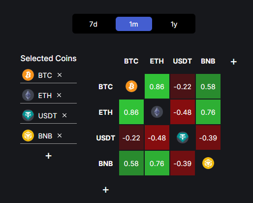 La situación ideal a la hora de farmear, sería el caso en el que tras emparejar dos tokens, estos dos suben de precio en una proporción similar, para ello es siempre aconsejable utilizar criptomonedas que se comporten de un modo similar. Existen herramientas como por ejemplo la que nos proporciona DeFiLlama, en la que puedes ver la correlación entre dos o más criptomonedas.