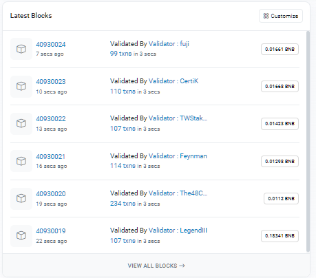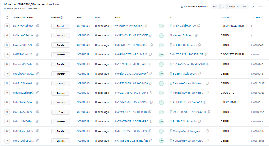 - Función: Permite buscar información específica en la blockchain de BNB Chain. Puedes ingresar una dirección de billetera, un hash de transacción, un número de bloque o un nombre de token para obtener datos detallados.
