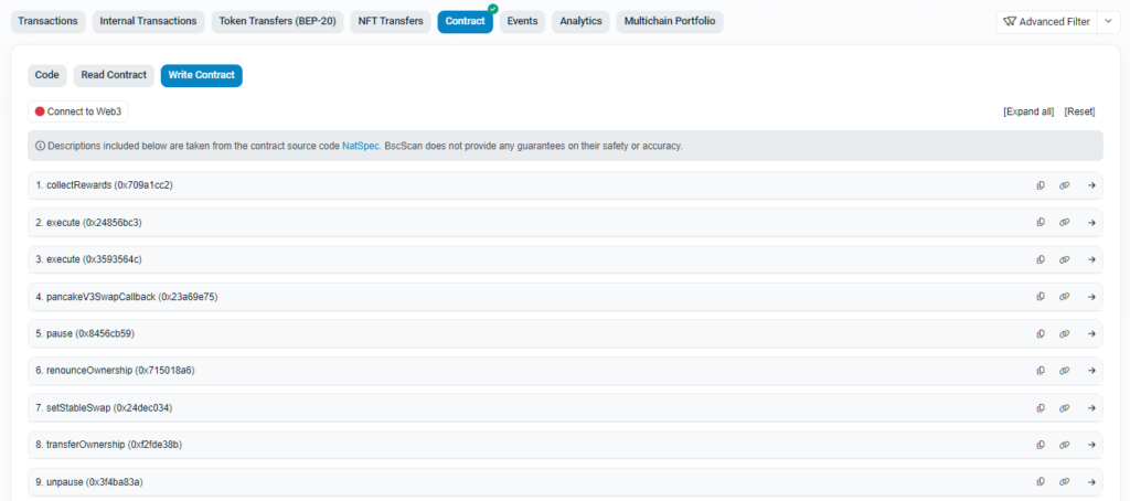 - Interacción con Contratos InteligentesContratos inteligentes Son programas almacenados en la blockchain que se ejecutan de forma automática cuando se cumplen unas determinadas condiciones.: Permite a los usuarios visualizar y, en algunos casos, interactuar directamente con contratos inteligentes desplegados en la BNB Chain.